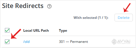 3. Under Local URL Path, select the redirect entry you want to remove.
